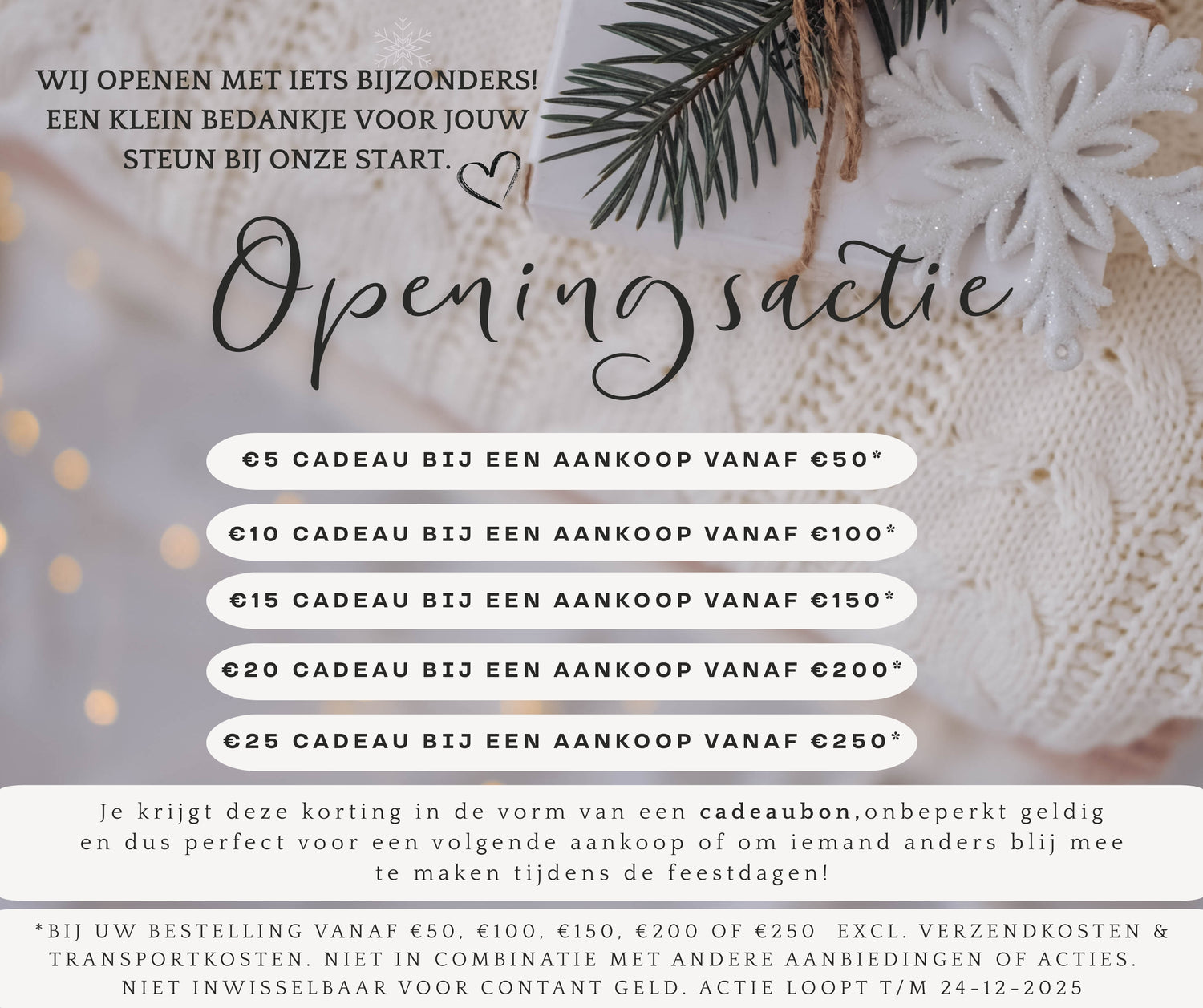 Met onze cadeaubon kan de ontvanger zelf kiezen uit onze collectie vol brocante schatten, tijdloze woonaccessoires en nieuwe items die elk interieur een huiselijk gevoel geven.