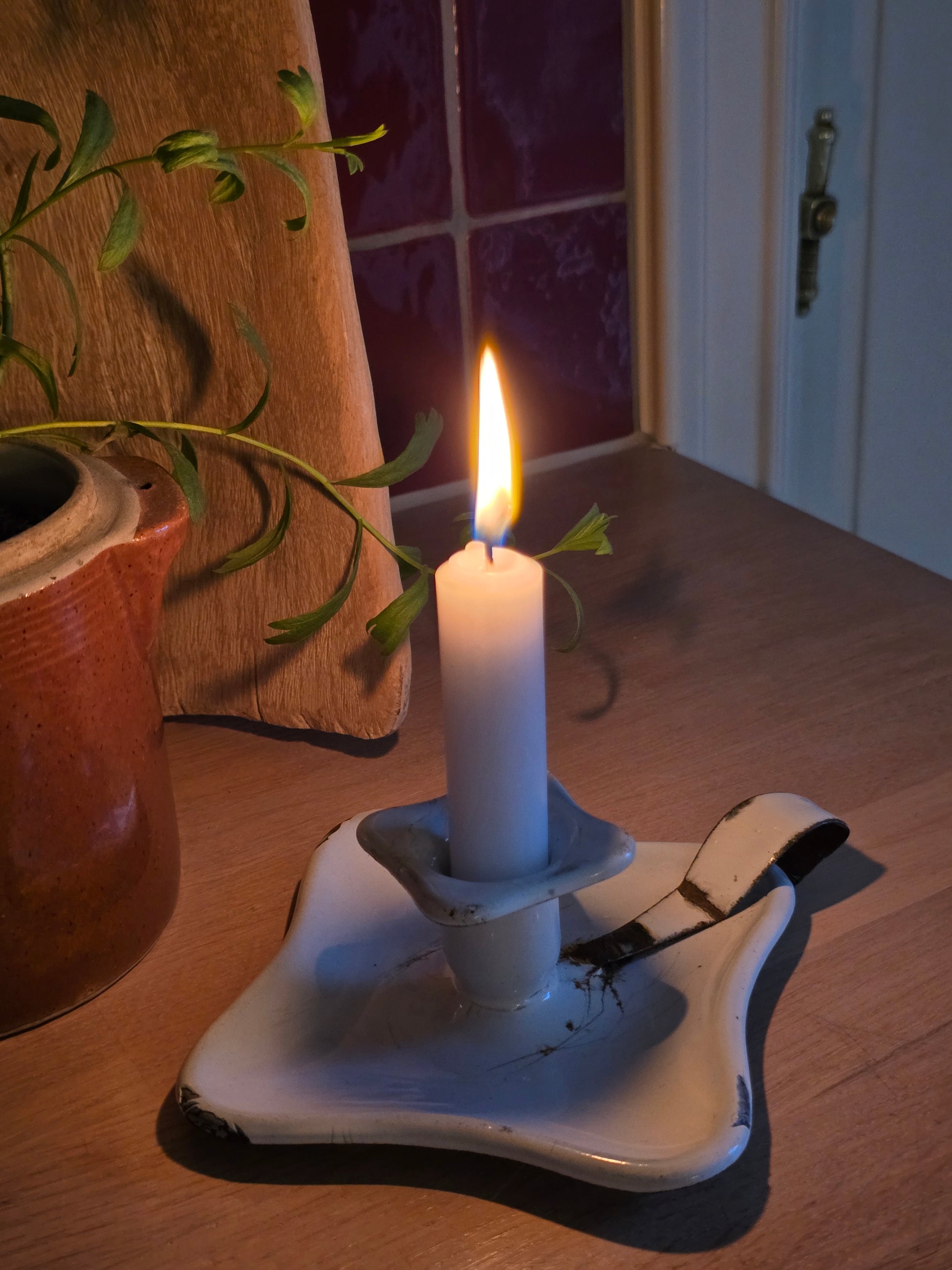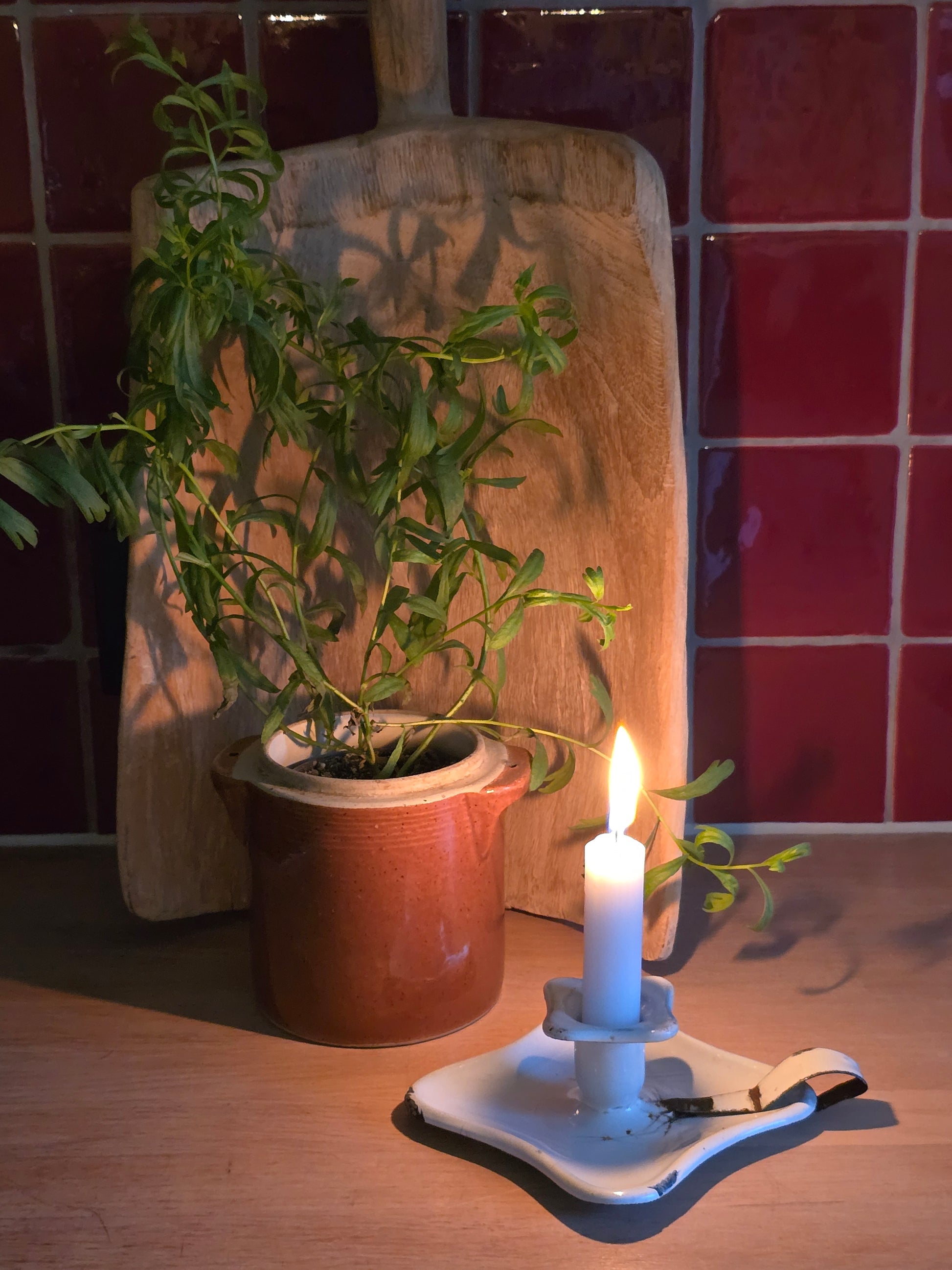 Breng een vleugje nostalgie in huis met deze charmante emaille kaarsenhouder.