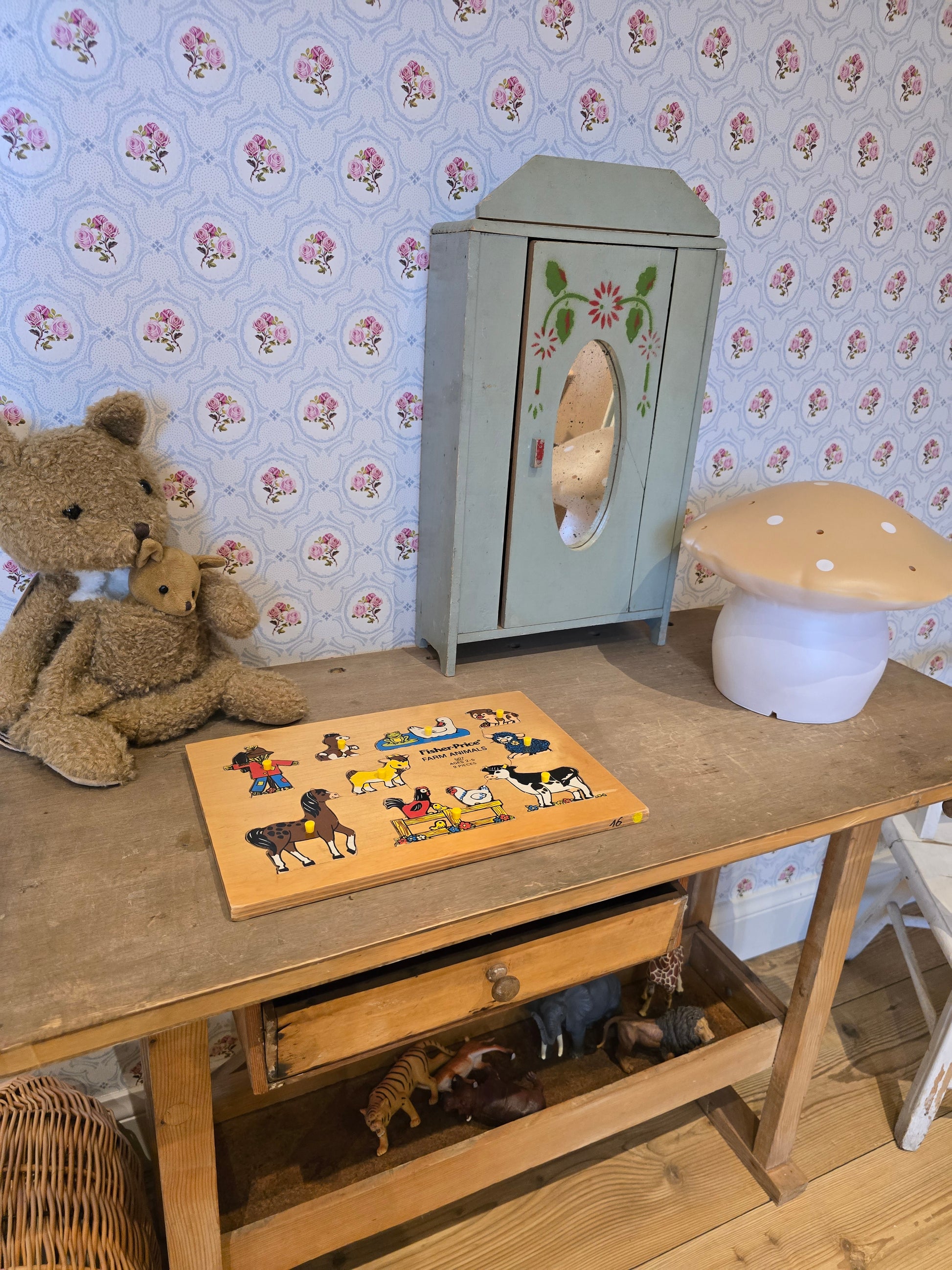 Breng charme en karakter in de kinderkamer met deze prachtige oude houten brocante werkbank. Ideaal voor kleine makers, knutselaars en ontdekkers.