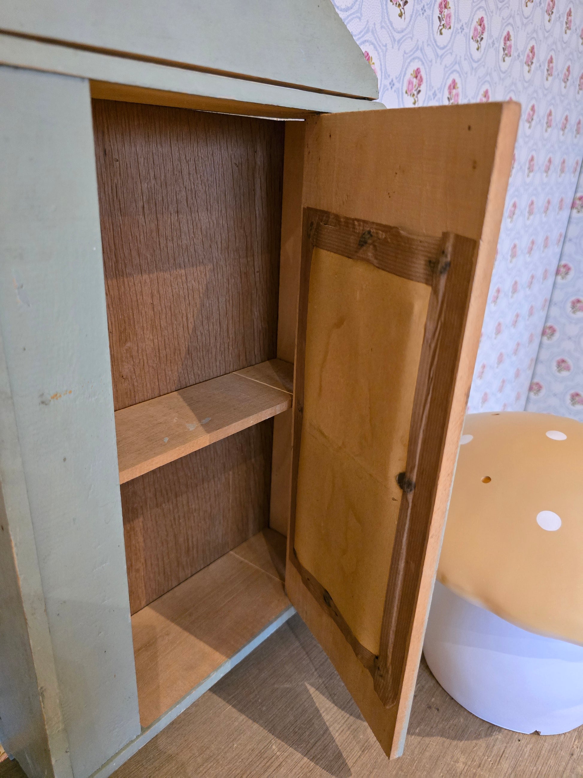 Met zijn compacte formaat past het gemakkelijk op een tafel, commode of in de speelhoek. Het kastje is niet alleen handig, maar ook een sfeervol decoratief item dat de kamer een authentieke, vintage look geeft.