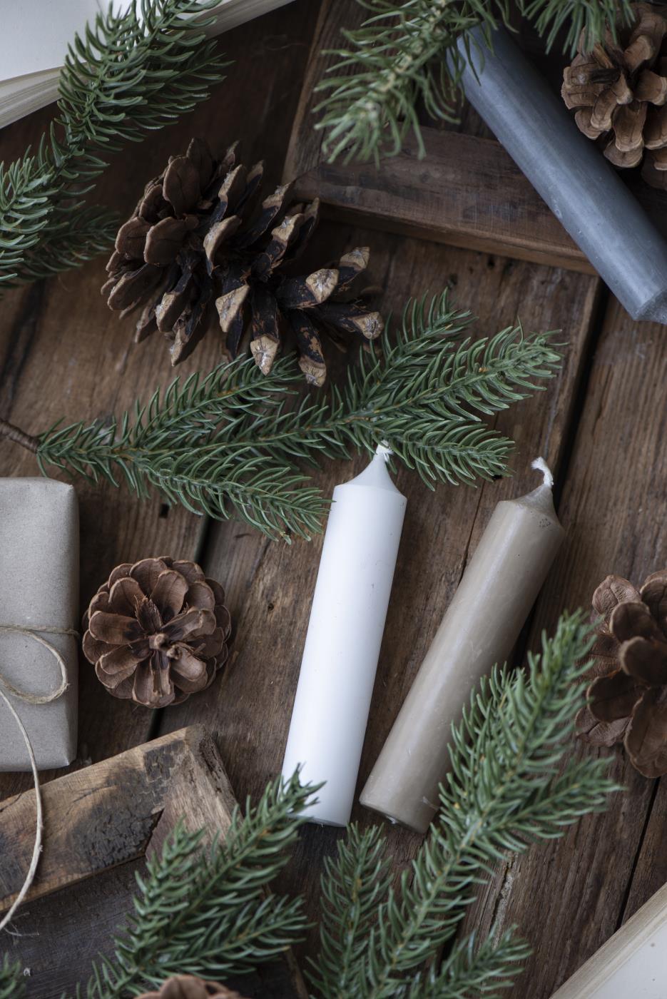 Decoratieve dinerkaars met een rustieke afwerking en natuurlijke uitstraling.