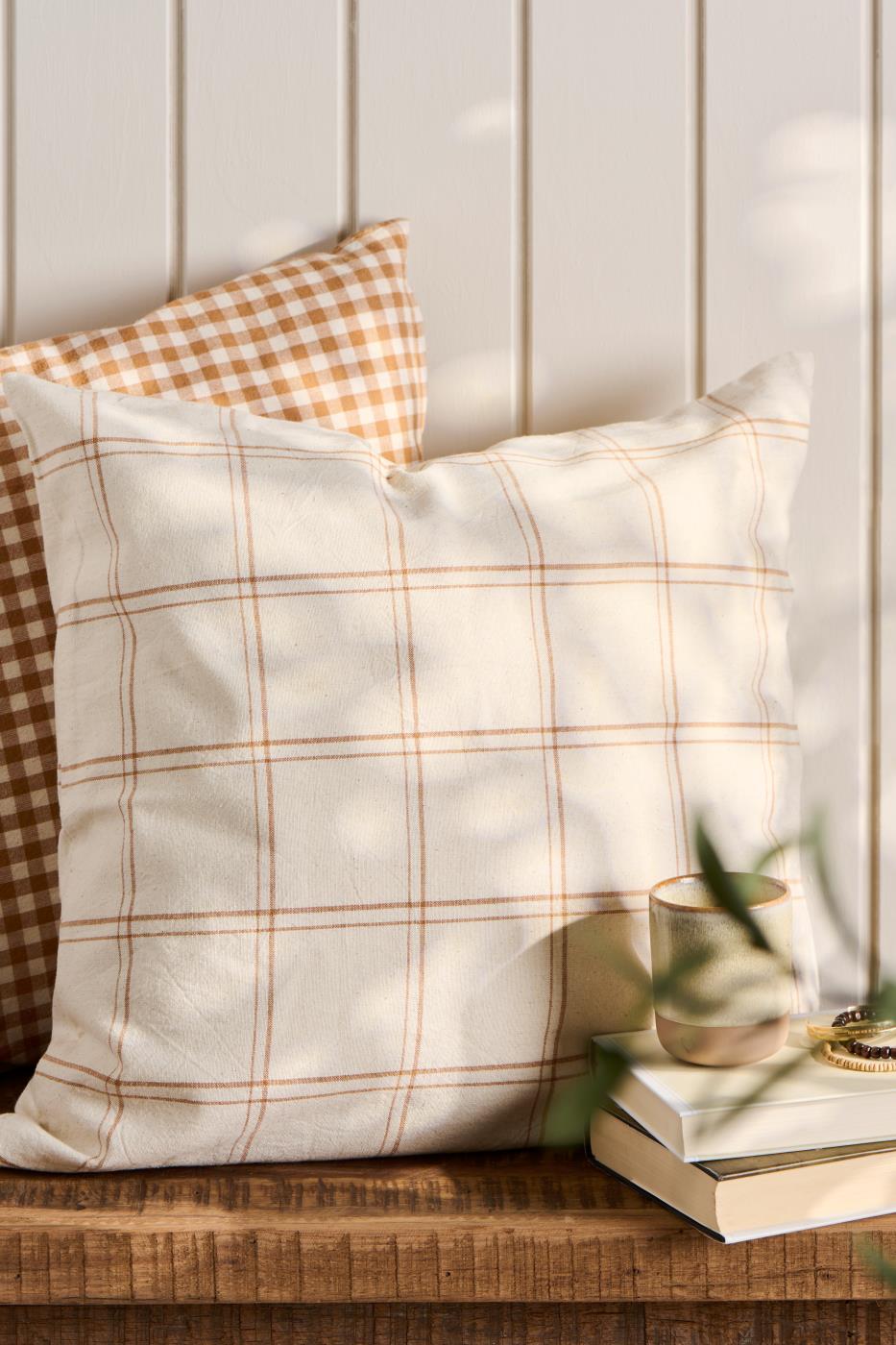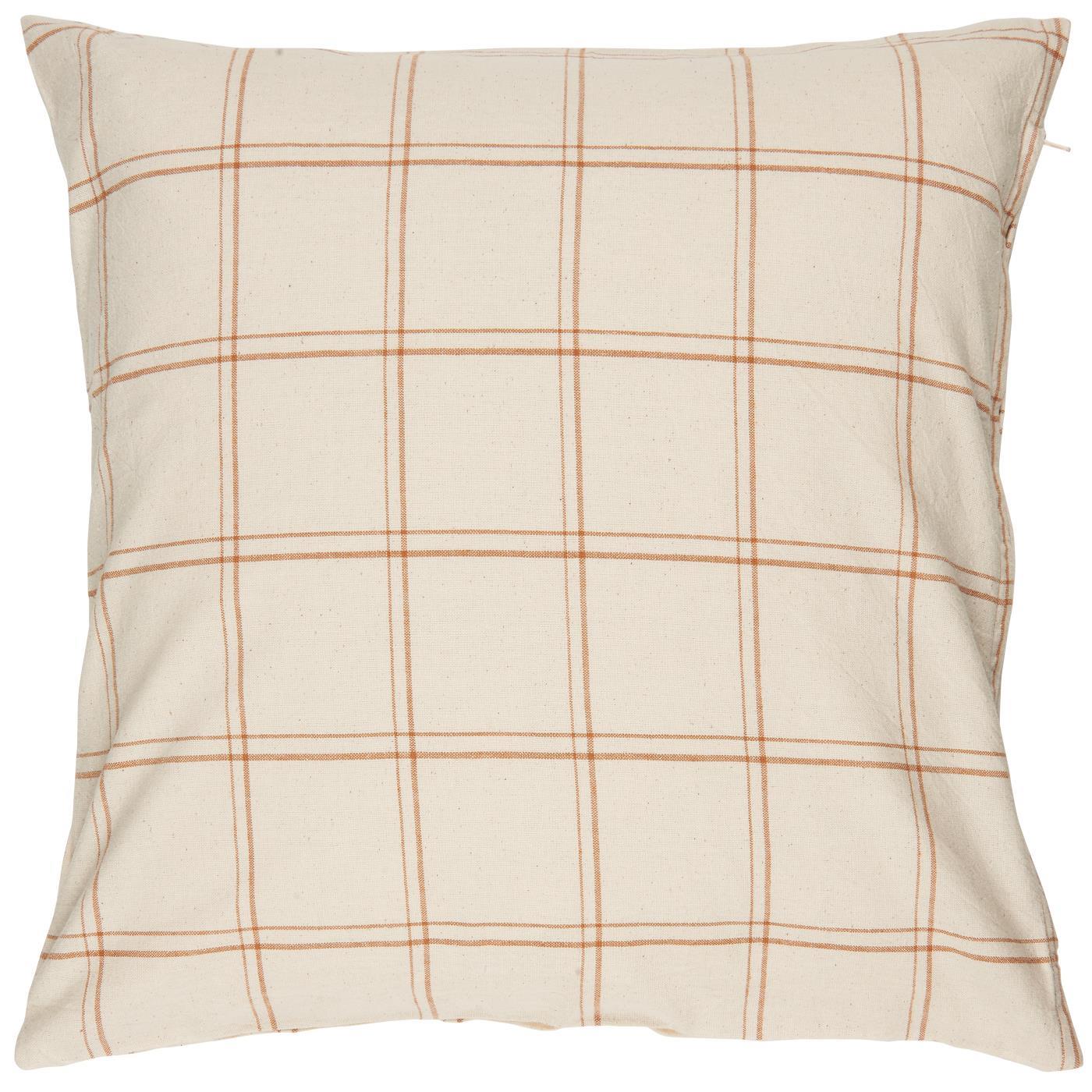 Kussenhoes Theodor, naturel met rustiek bruin ruitpatroon