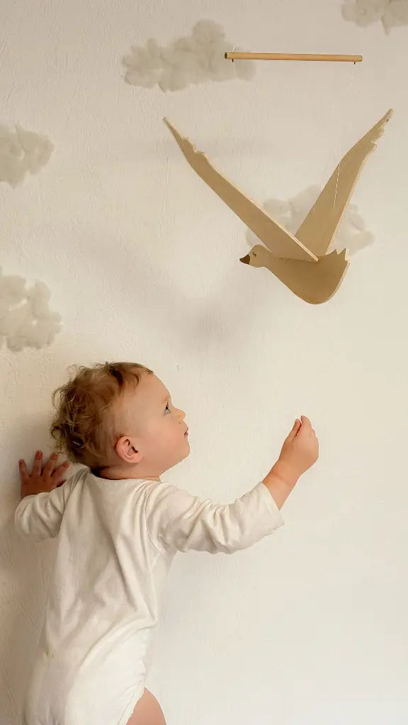 Trek aan het touwtje en zie deze zachtaardige houten gans door de lucht vliegen. Zijn vleugels fladderen zachtjes en veranderen elk moment in een magische vlucht.
